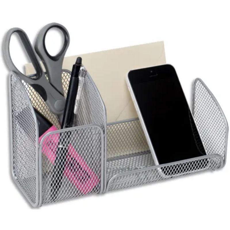 ALBA Trieur Mesh Gris en métal, 3 compartiments - Dimensions : L21 x H12,5 x P10 cm
