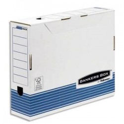 BANKERS BOX Boîte archives dos 10cm SYSTEM, montage automatique, carton recyclé blanc/bleu