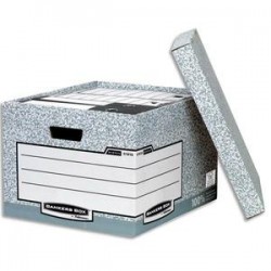BANKERS BOX Lot 10 boîtes archives dos 15cm BASIQUE, montage manuel, carton recyclé. Sous film.